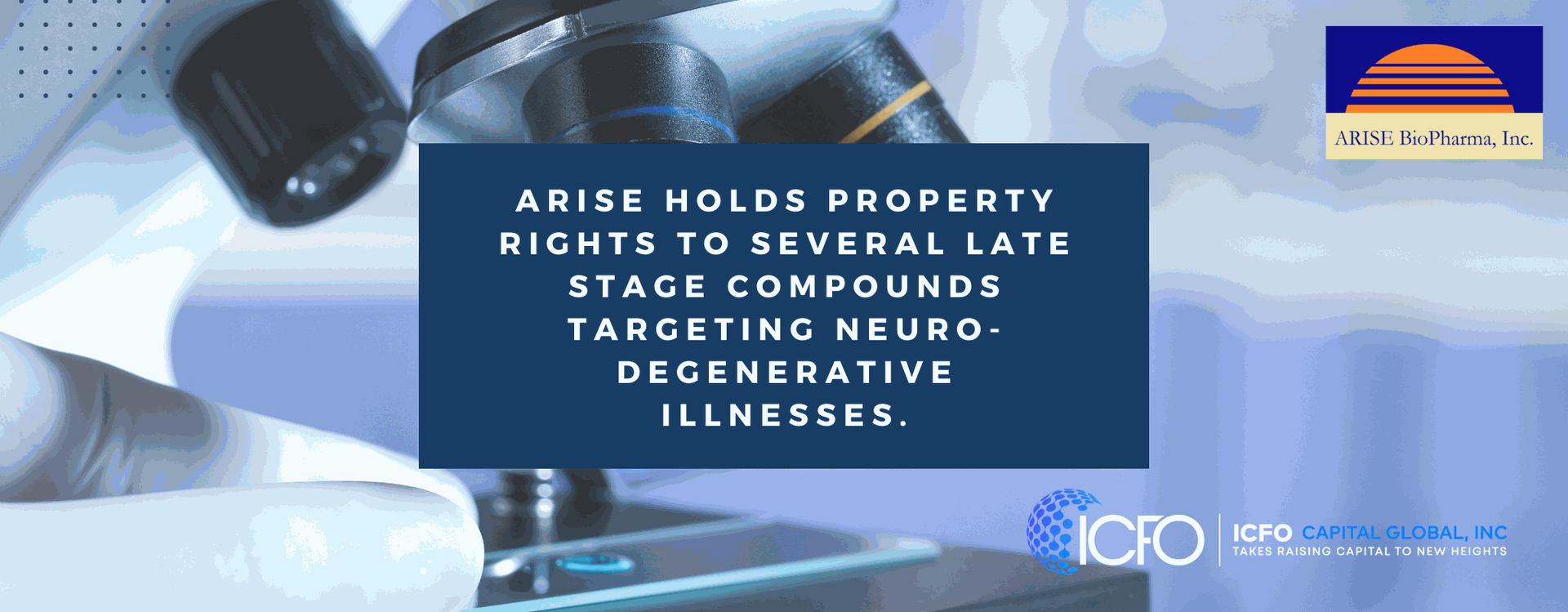 SAN DIEGO, CALIFORNIA - iCFO Capital Global, Inc., recently partnered with Arise BioPharma to raise $20M  from iCFO Capital Global investor network nationwide.